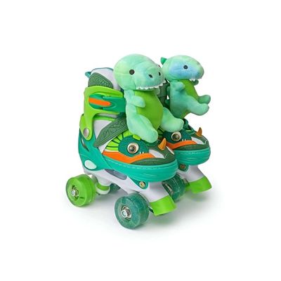 PATIN DE 4 RUEDAS PARA NIÑOS DINOPATIN VERDE CON ACCESORIOS TALLA S DEL 30 AL33 | Falabella