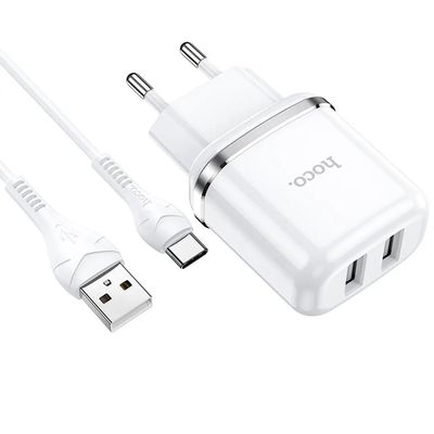Cargador Celular 2.1 Doble Usb /Cable Tipo C Blanco, Philco Color Blanco