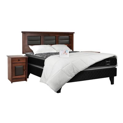 Cama Europea Celta 2 Plazas Terapeutic + Respaldo + 2 Veladores Villarreal
