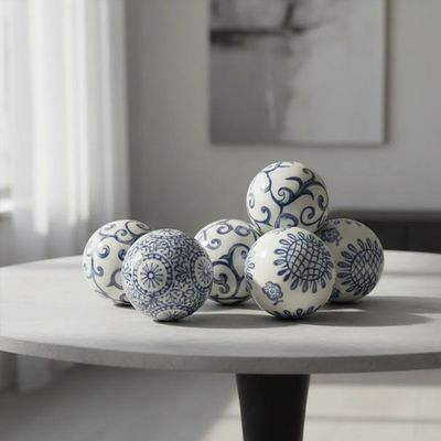 Set De 6 Esferas Decorativas Azul Y Blanco | Falabella