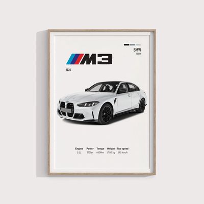 Cuadro Bmw M3 2025 Blanco Deportivo + Marco | Falabella