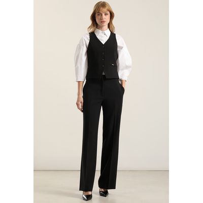 Pantalón recto, tiro alto, negro Liola