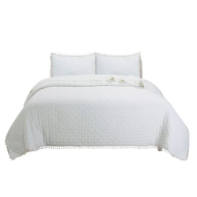 CUBRECAMA QUILT DE VERANO CON POMPONES 2 PLAZAS UNICOLOR