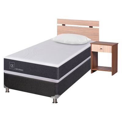 Box Spring CIC 1,5 Plazas Ortopedic + Respaldo + Velador Olmo + Almohada