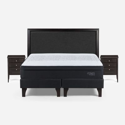 Cama Europea Rosen Base Dividida 2 Plazas Tempo + Respaldo + 2 Veladores Nolita Grafito