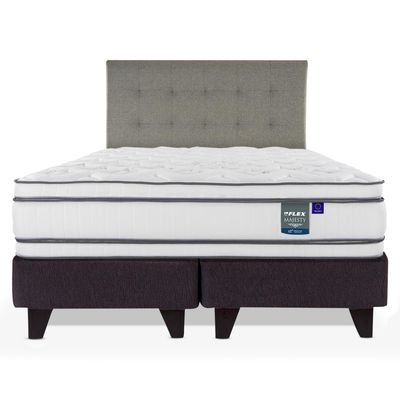 Cama Europea Majesty 2 plazas base dividida + respaldo Design gris