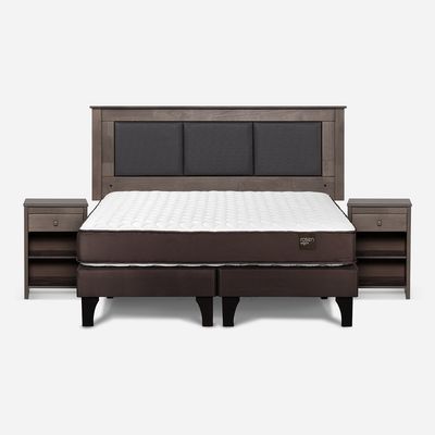 Cama Europea Rosen Base Dividida 2 Plazas New Ergo T + Respaldo Rachel Gris + 2 Veladores