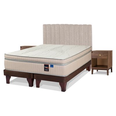 Cama Europea Maximo Cob 2 Plazas + Respaldo + 2 Veladores