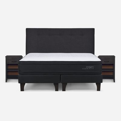 Cama Europea Tempo Plus King + Set Muebles Issey Grafito