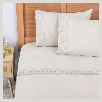 Juego de sábanas King microfibra Bordada beige