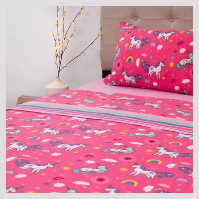 Sábanas Polar Infantil Doral Unicornio 1.5 Plazas Rosado