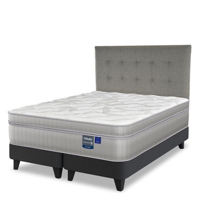 Cama Europea Europedic Dual 2 Plazas Box B/D + Respaldo Royal Gris