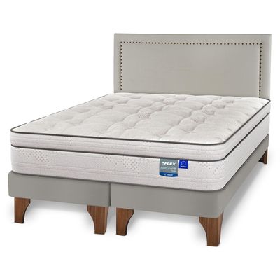 Cama Europea Natural Pocket 2 PL + Respaldo Design + Velador
