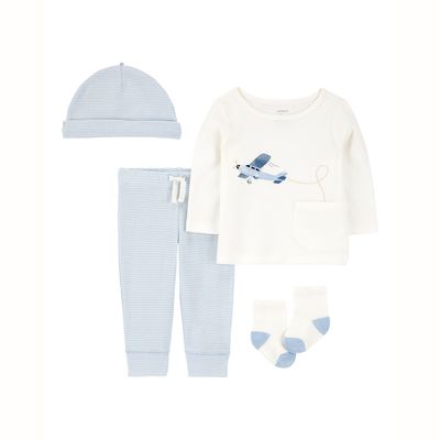 Conjunto 4 Piezas Polera, Pantalón, Gorro y Calcetines Bebé Niño