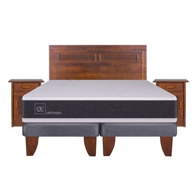 Cama Europea NewOrtopediced 2 Plazas + Respaldo + 2 Veladores | Falabella