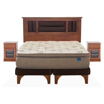 Cama Europea Flex Base Dividida King Máximo Cobre + Respaldo + 2 Veladores Colonia