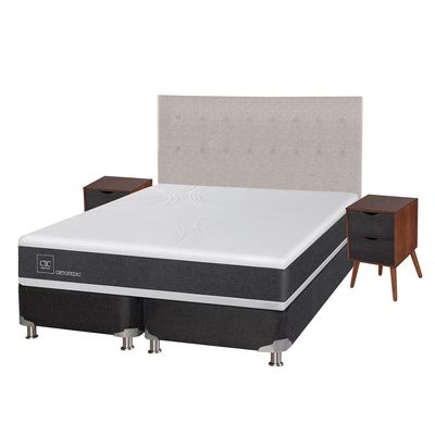 Box Spring CIC Base Dividida King New Ortopedic + Respaldo + 2 Veladores Baker