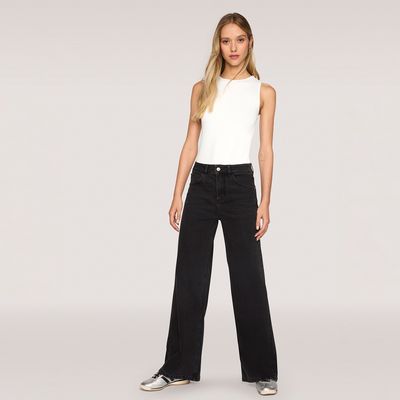 Jeans Mujer Wide Leg Tiro Alto Negro Sioux