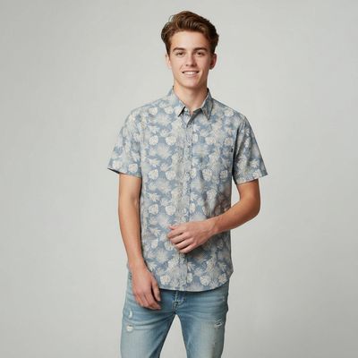 Camisa Manga Corta Estampada de Algodón Niño Chess Denim