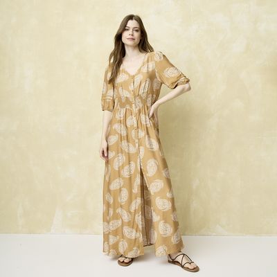 Vestido maxi lino Liola mujer beige