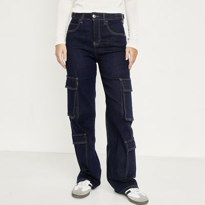 Jeans Cargo Relaxed Azul Mujer