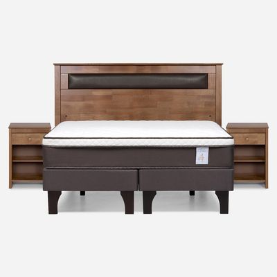 Cama Europea New Style 4 P 2 Plazas + Respaldo + 2 Veladores | Falabella