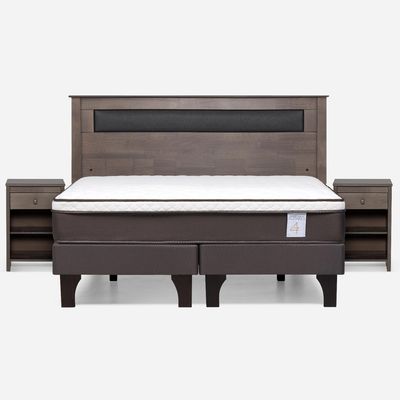 Cama Europea New Style 2 Plus King + Respaldo + 2 Veladores