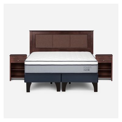 Cama Europea Rosen 2 Plazas Indie + Respaldo + 2 Veladores Dolce