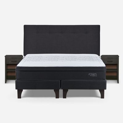 Cama Europea Tempo 2 Plazas + Respaldo + 2 Veladores