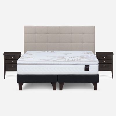 Cama Europea Rosen Base Dividida King Art 4 + Respaldo + 2 Veladores Issey