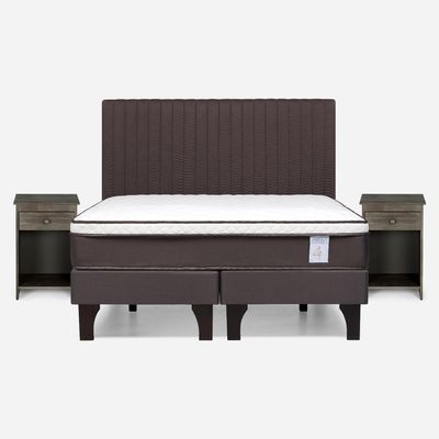 Cama Europea New Style 4 Plus Base Dividida 2 Plazas + Set Muebles Lucio Chocolate