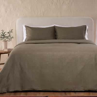 Set Funda Plumón 100% Lino prelavado, color kaki tamaño King.
