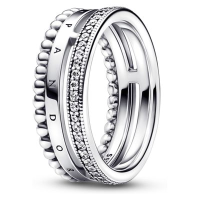 Anillo en Plata Insignia Pandora en Pavé y Esferas Clara