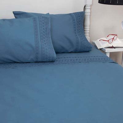 Juego de sábanas 2 plazas 144 Hilos azul