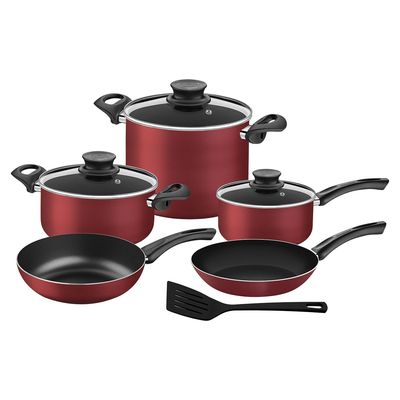 Tefal - Batería De Cocina 9 Piezas Supercook B460S984 Antiadherente Rojo