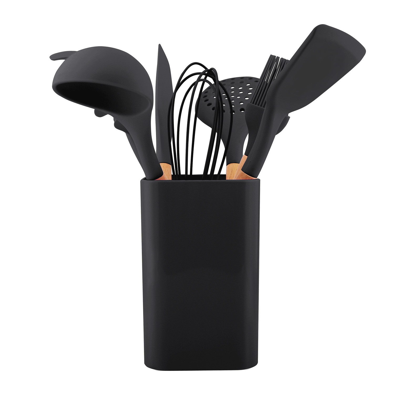 Set de utensilios de cocina silicona madera negro