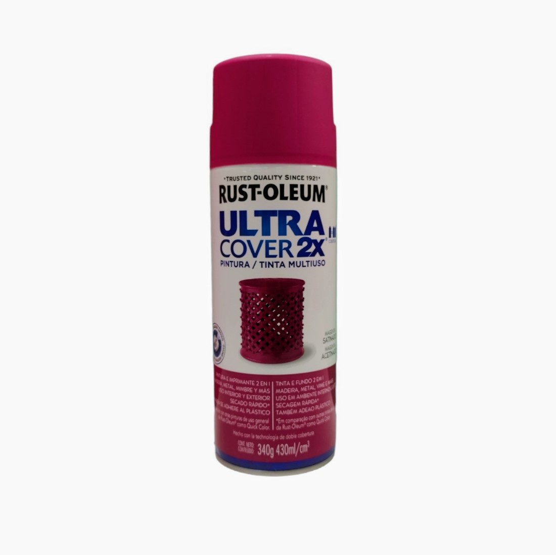 Pintura en aerosol ultra cover 2x 340grs magenta satinado - rust oleum. pintura en aerosol ultra cubritiva para aplicar sobre madera, metal, plástico, mimbre, vidrio, melamina. con los aerosoles rust-oleum® ultra cover® 2x puedes renovar, restaurar o reciclar el objeto que imagines, sin importar la forma o material con que esté hecho. ya sea que estés buscando un color original o un acabado único, encontrarás en ultra cover® 2x el mejor aliado para tu proyecto.