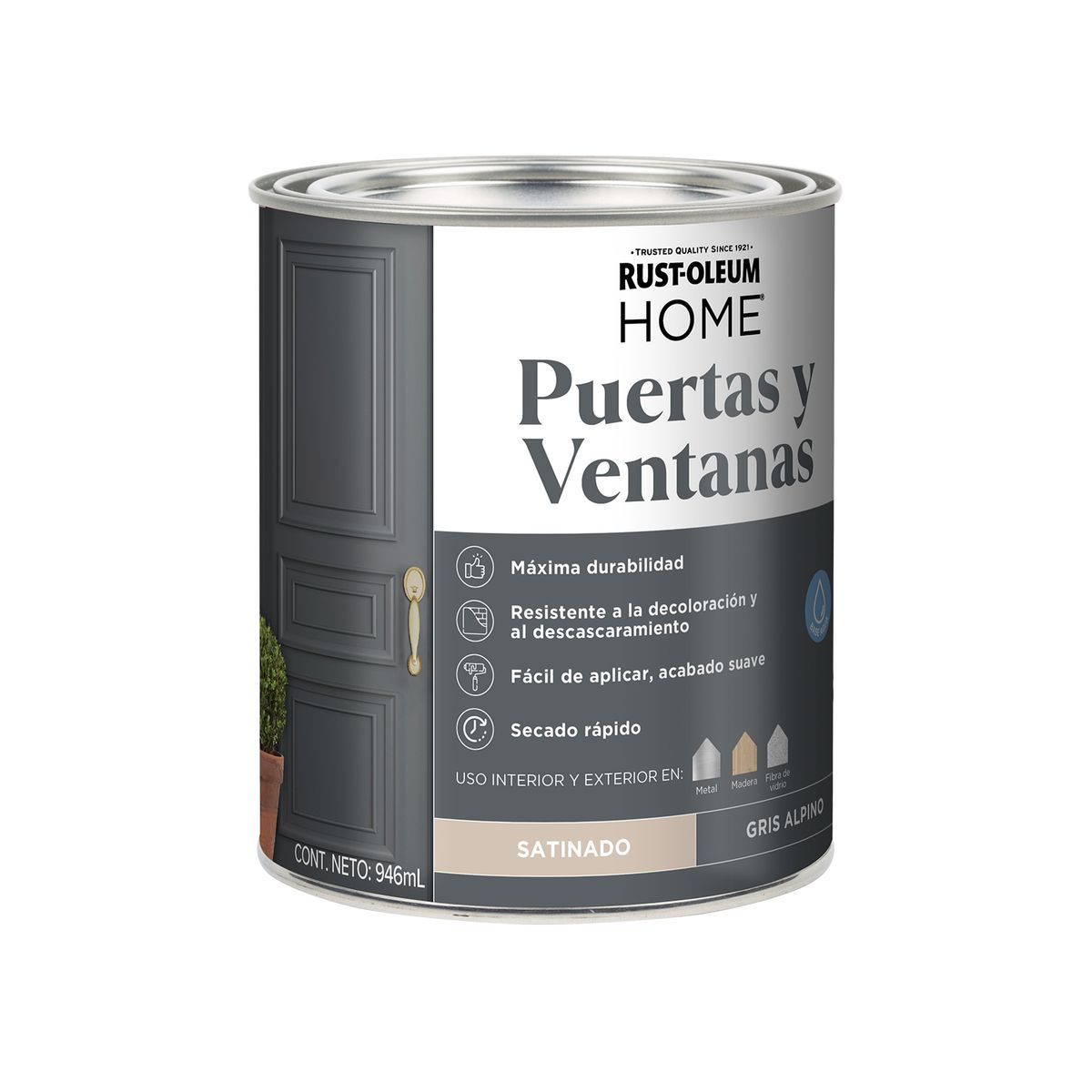 Rust-Oleum - Pintura Puertas Interior Y Exterior Gris Alpino Satinado 946 Ml | Lider Electrohogar