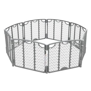 Evenflo área de juego versátil ajustable, plástico, 8 paneles (gris frío) - disfruta de la versatilidad en interiores y exteriores: cuenta con patas exclusivas y reversibles con estacas exteriores para estabilidad del césped, así como almohadillas de suelo antimovimiento y antiarañazos para cualquier superficie interior del suelo - dispread out: proporciona un espacio seguro y espacioso para que un niño de 6 a 24 meses de edad juegue: mide 34.5 pies cuadrados a 28 pulgadas de alto; el diseño único de bisagra permite que cualquier panel sea un acceso a la puerta - configurar/desmontar en poco tiempo: se monta rápida y fácilmente, no requiere herramientas - llévalo para llevar: el diseño plegable y un mango moldeado hacen que el tiempo de juego sea fácil - limpieza a través de la limpieza: se limpia con jabón suave y agua tibia, séquelo bien con un paño suave antes de usarlo; no utilice limpiadores abrasivos o disolventes - protege a todos tus bebés: ayuda a mantener un ambiente seguro para niños y mascotas pequeñas