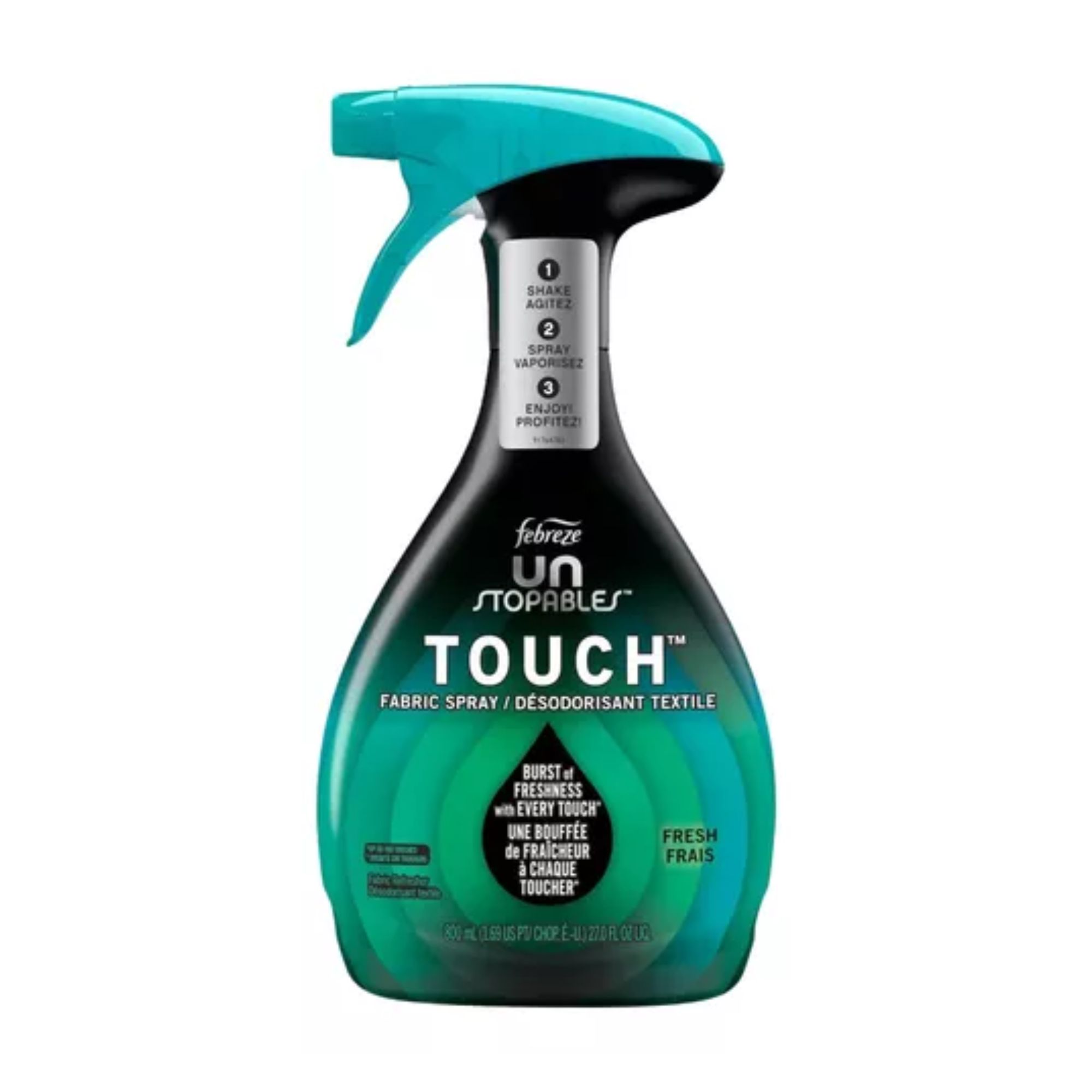 Telas eliminador de olores unstopables fresh 800ml - febreze obtén una ráfaga de frescura con cada toque gracias al spray de tela febreze unstopables touch la innovadora tecnología activada por tacto almacena el aroma en tus telas para que puedas combatir los olores y disfrutar de la frescura bajo demanda utiliza febreze touch en tu sofá, alfombras, almohadas, mantas o incluso pruébalo con tu ropa favorita da a las telas un toque de frescura duradera que querrás oler una y otra vez