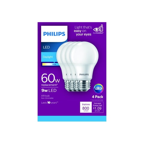 Paquete De 4 Bombillas Led Philips 461137 8W 60W Luz Día A19 | Lider Electrohogar