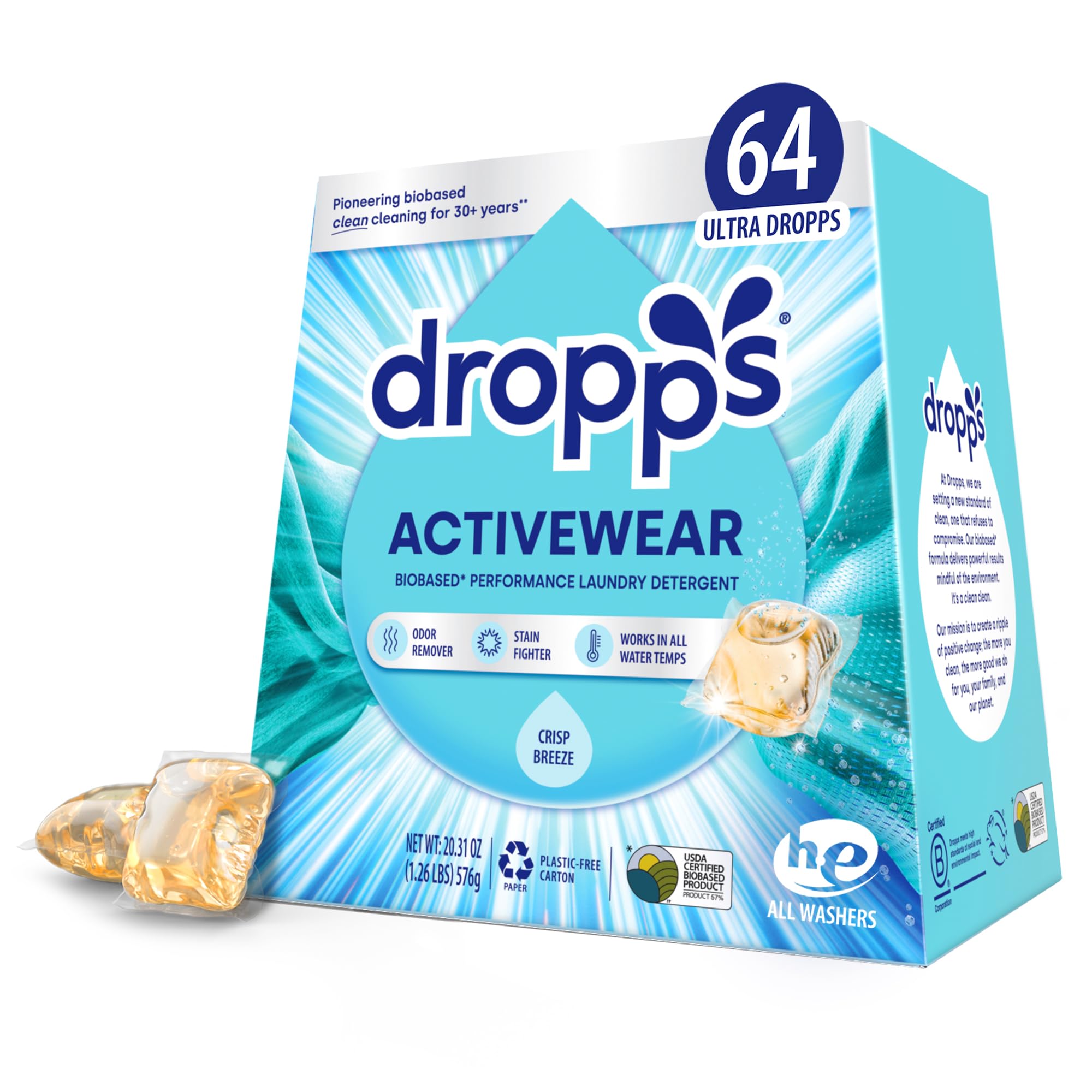 Dropps - Detergente Para Ropa Pods Drops Activewear Biobased, 64 Tabletas | Lider Electrohogar