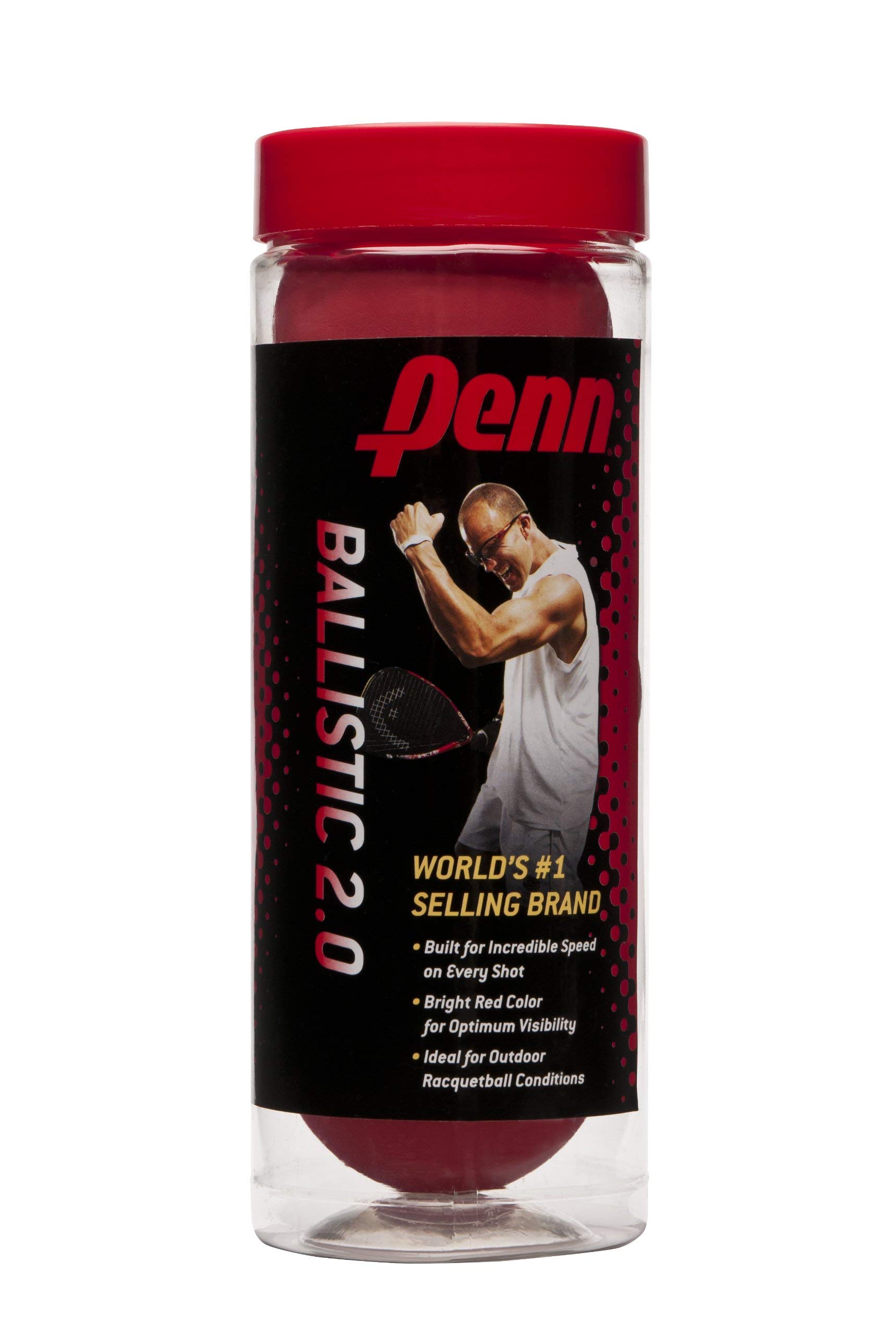 Penn ballistic 2.0 ráquetballs - bola #1 en venta: el producto de décadas de pruebas y perfeccionamiento; las bolas de raqueta penn son la línea de bolas de raqueta más vendida en el mundo. - máxima visibilidad: las bolas de raqueta penn cuentan con un tono rojo brillante para una visibilidad superior en todas las condiciones de juego en interiores y exteriores. - juego consistente: los jugadores de todo el mundo eligen penn una y otra vez para un rebote y juego confiables que no se encuentran en ninguna otra pelota de raquet. - para jugadores experimentados: una excelente opción para jugadores veteranos, el ballistic 2.0 está diseñado para juegos explosivos y mayor durabilidad. - penn durabilidad: el caucho duradero garantiza que las pelotas de raqueta de todas las canchas jueguen como nuevas durante el mayor tiempo posible.