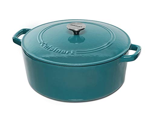 Cuisinart cacerola ovalada de hierro fundido 7 qt el exterior de porcelana esmaltada complementa cualquier decoración de cocina y la contracción de hierro fundido mantiene el calor bien el interior no altera los sabores ni absorbe los olores asas de hierro fundido anchas proporcionan un agarre cómodo y seguro agarradera segura para horno e infinitas opciones en la cocina apto para estufas hornos y parrilla la construcción de hierro fundido proporciona una retención de calor superior e incluso distribución del calor acabado resistente y duradero en colores ricos que complementa cualquier decoración de cocina perfecto para cocinar servir y entretener cómodo mantenimiento fácil de limpiar y apto para lavavajillas