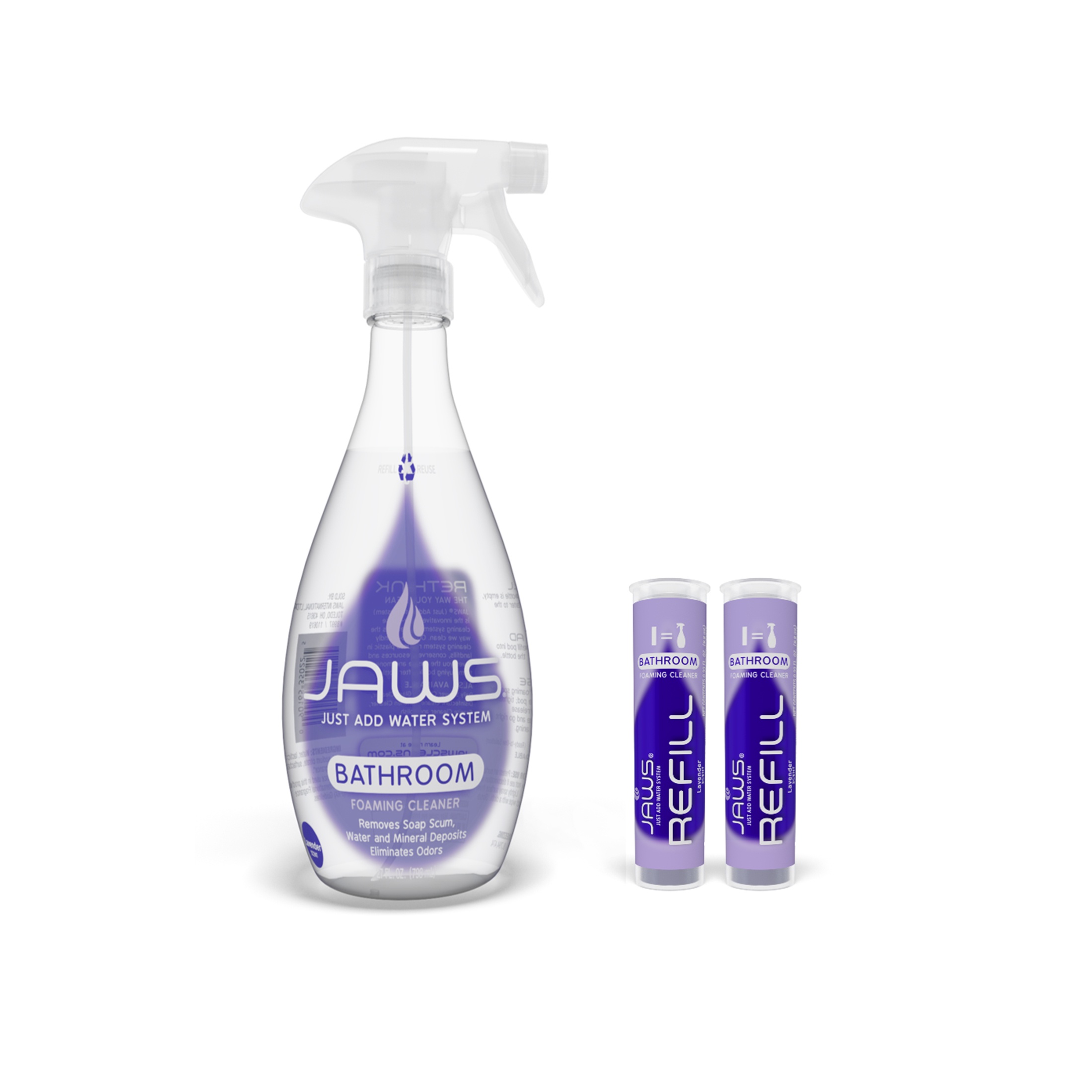 Kit inicial baño espuma jaws, incluye: botella con gatillo, capacidad 739 ml + 2 repuestos, rinden: 739 ml c/u