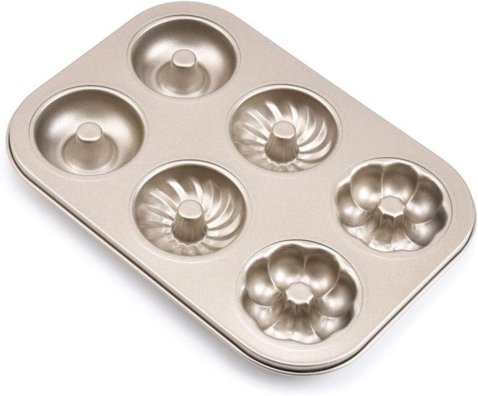 Xinqihang - Molde Para Bundtlette, Mini Donuts, Molde Para Pasteles Con 6 Cavidades, Antiadherente, Molde Para Muffins De 2.5'', Acero Al Carbono Dorado | Lider Electrohogar