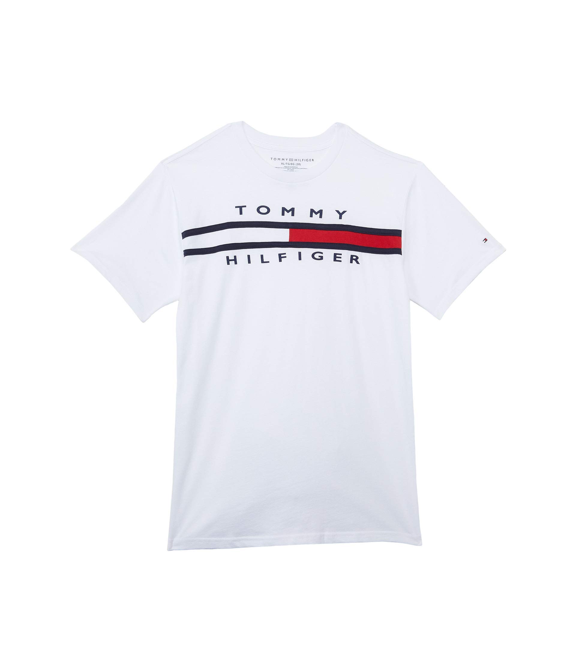 Camiseta Tommy Hilfiger De Manga Corta Para Niños Con Bandera De 8 A 10 Años, Color Blanco
