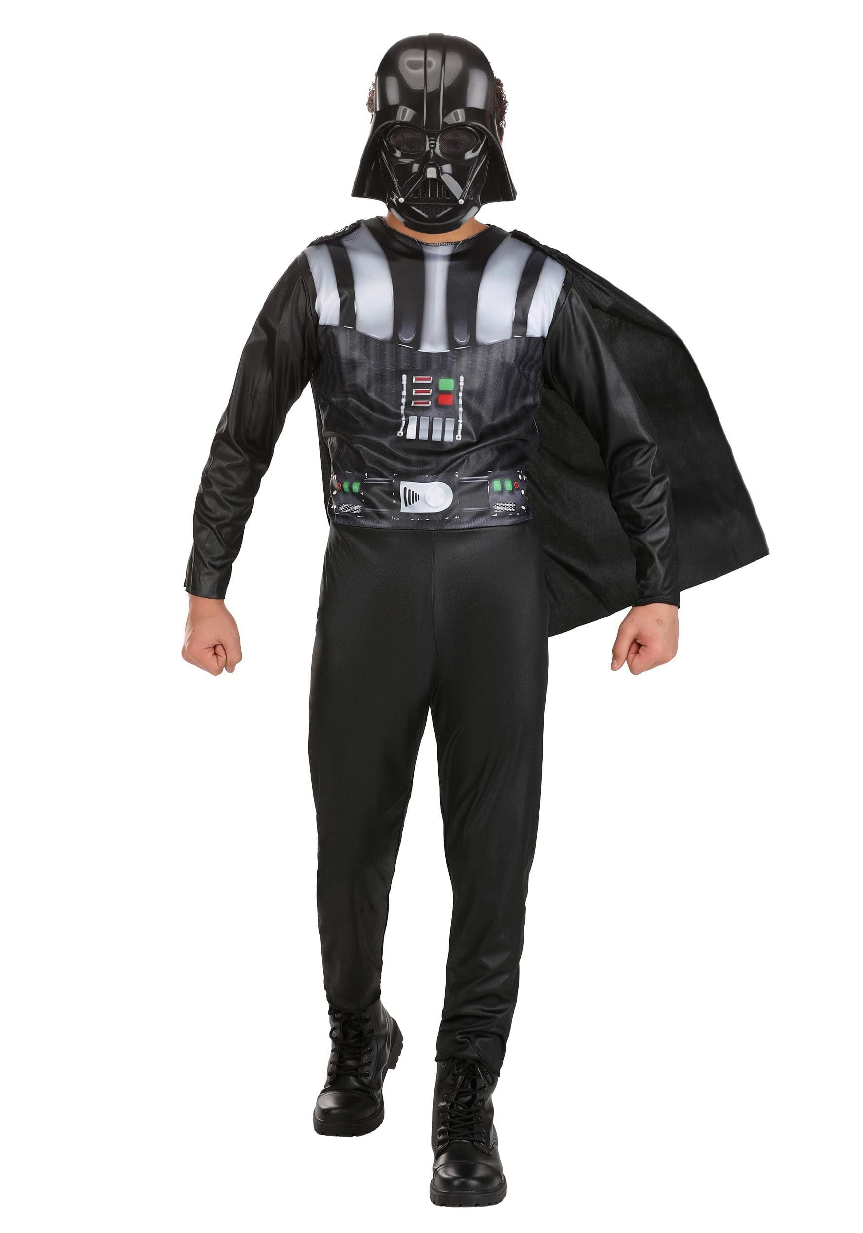 Jazwares star wars disfraz de darth vader para niños, disfraz de halloween para niños, con licencia oficial, talla l - talla: large - darth vader: gira hacia el lado oscuro con el disfraz juvenil de star wars darth vader. - sith armor: el mono está inspirado en la armadura de darth vader de la trilogía original de star wars. - impresión de soporte: cuenta con un diseño impreso en todas partes para representar los sistemas de soporte vital de vader - capa y máscara: incluye capa desmontable y media máscara 3d para mostrar la majestuosidad oscura del traje.