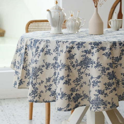 Mantel De Lino Redondo Yihomer Pastoral De 150 Cm De Diámetro Azul Oscuro | Lider Electrohogar