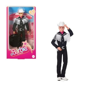 Celebra la película de barbie con este muñeco coleccionable$$ken luce como el mejor vaquero con su atuendo blanco y negro$$su camisa clásica está inspirada en el estilo del personaje de ken en la película